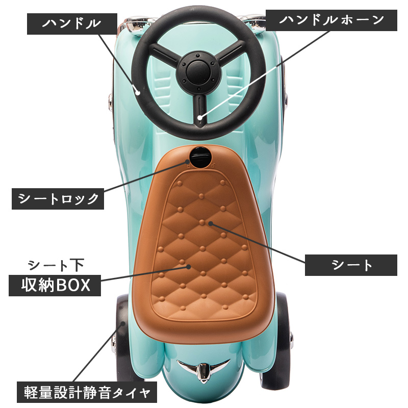★クラシカルでかわいいデザインの足けり乗用玩具。