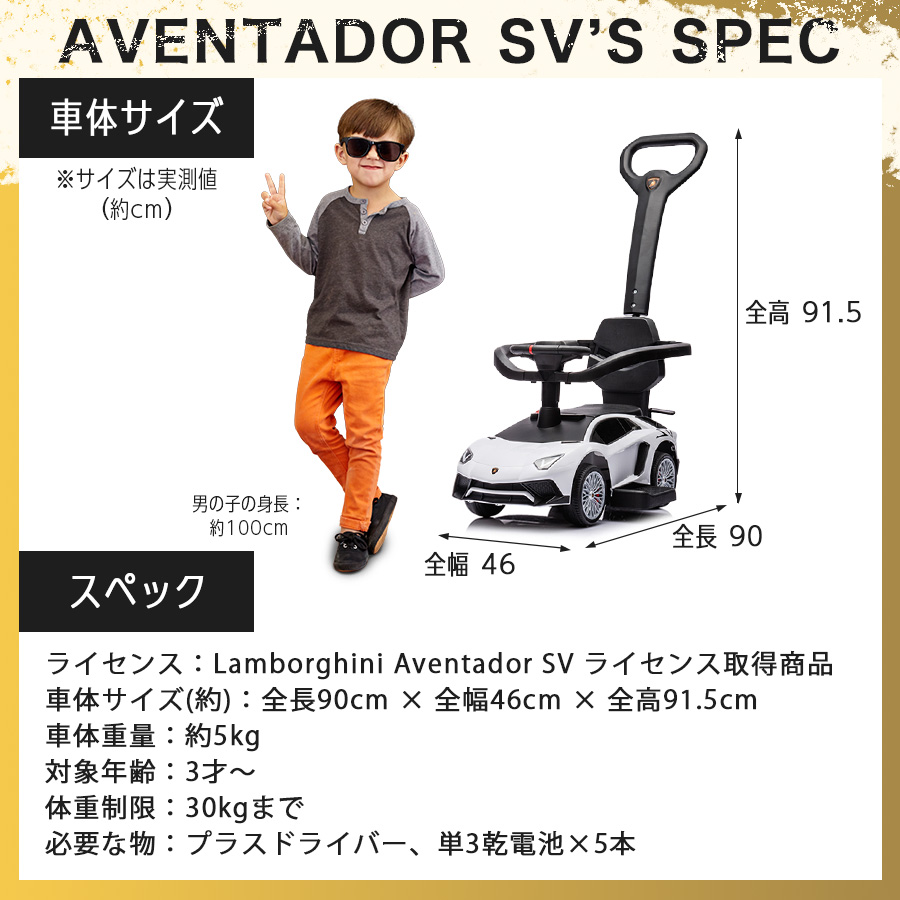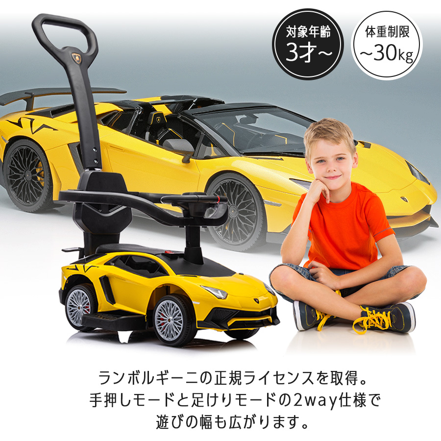 足けり乗用玩具 ランボルギーニ アベンタドールSV 手押し棒 付き 乗用玩具